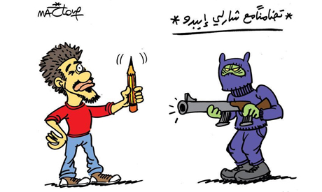 Pravdou však je, že arabský svet zasiahol teroristický čin v redakcii Charlie Hebdo rovnako, ako ostatný svet. Takýmito karikatúrami reagovali na udalosť rôzne arabské štáty.