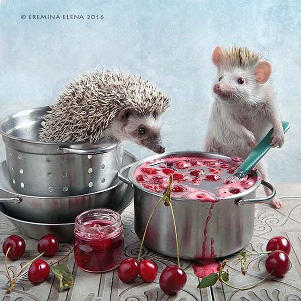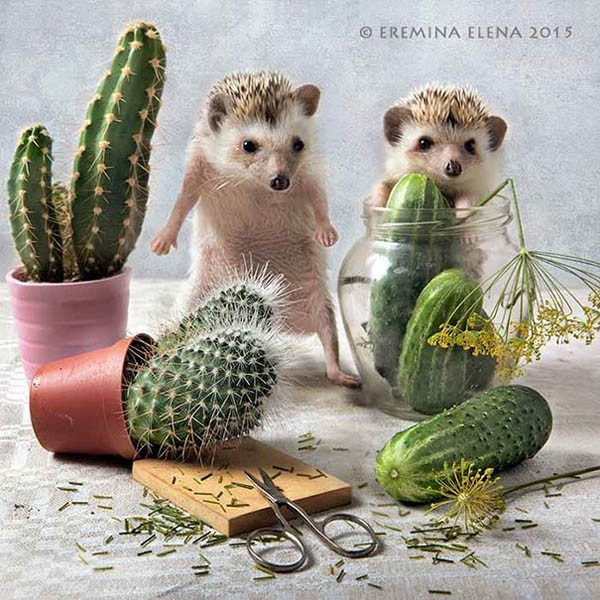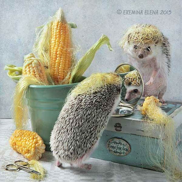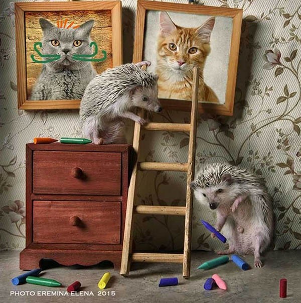 Ježko v úlohe človeka - takto sa dá popísať séria fotiek, ktorú nám autorka prináša. Nevieme, akým spôsobom sa jej tieto obrázky podarilo získať, no iste znamenali hodiny práce a obrovské množstvo trpezlivosti.