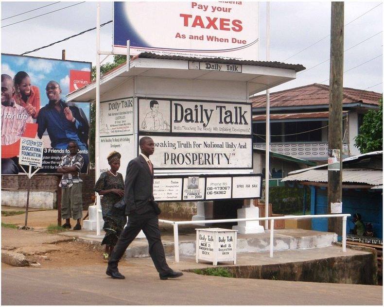 Inovatívne noviny Alfreda J. Sirleafa sa volajú The Daily Talk a nie sú úplne klasickými „novinami“. Správy totiž nepíše do počítača alebo na kus papiera, ale na veľkú čiernu tabuľu umiestnenú pri hlavnej ceste.