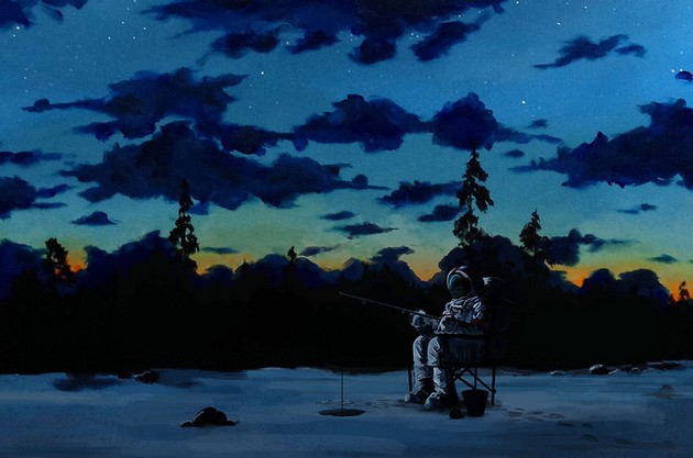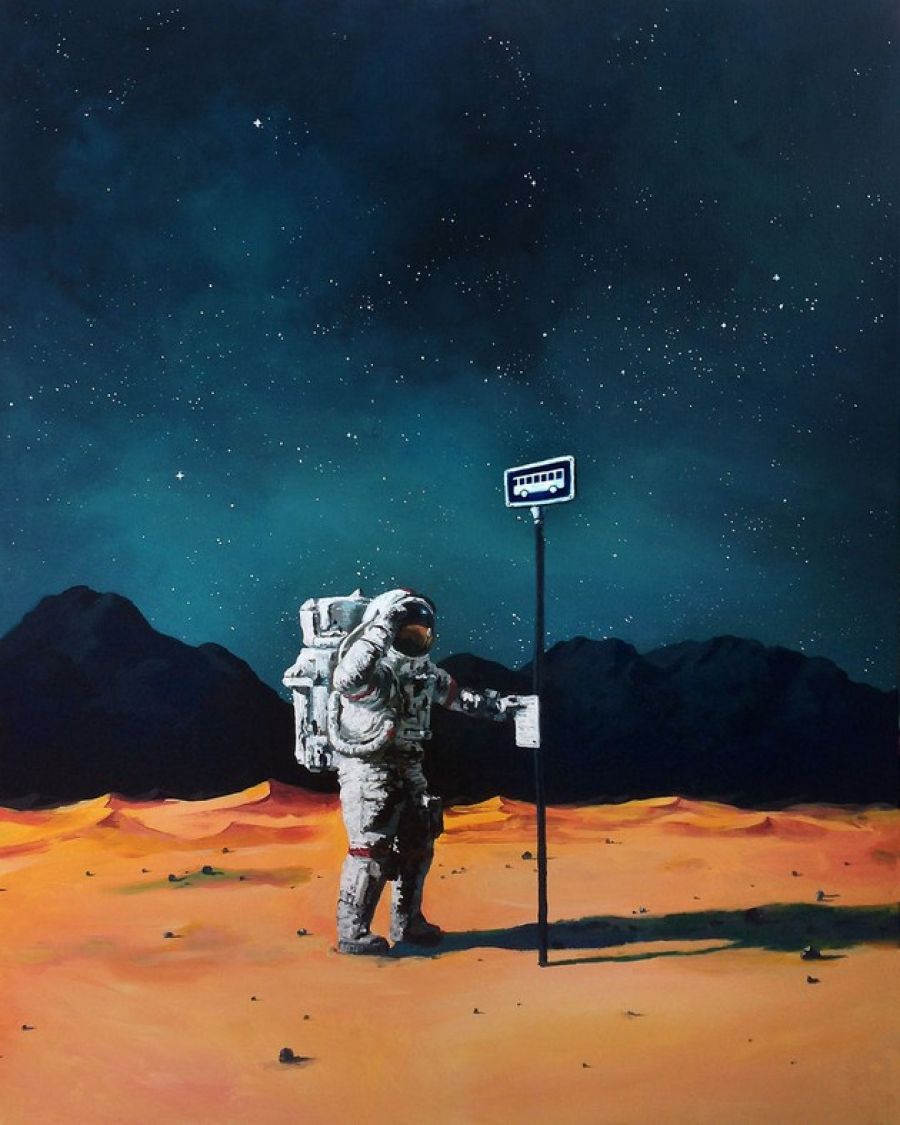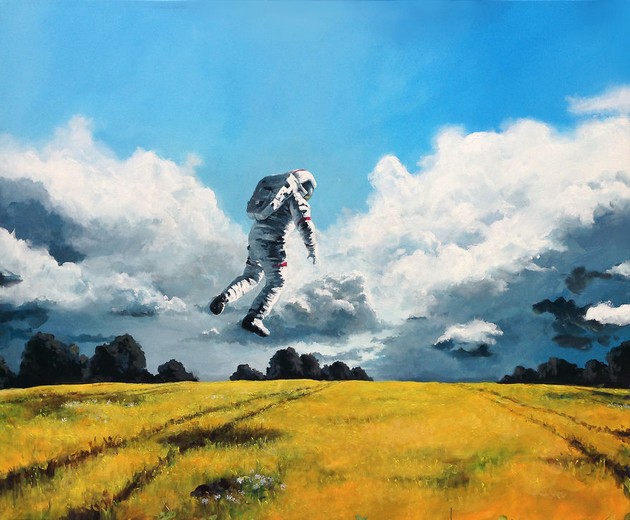 Potreba zaplniť prázdne steny prerástla do veľkej vášne a Thomas sa už môže pochváliť desiatkami obrazov, ktoré sám vytvoril. Z jeho webovej stránky http://thomasjuulkrahn.com/ nás najviac zaujala séria astronautov v situáciách na planéte, podobnej tej našej.