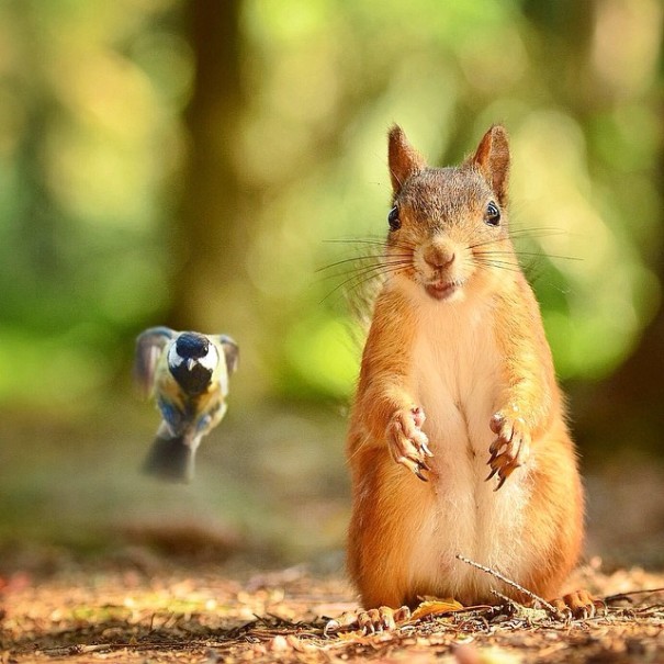 Najčarovnejšie je to, že mu zvieratá natoľko dôverujú, že sa prídu nakŕmiť z jeho ruky. A on potom môže vytvoriť tieto krásne fotografie. Možno je tento chlapec vo Fínsku akýmsi psychológom lesných zvierat.