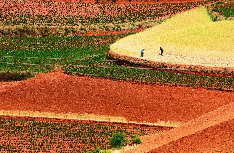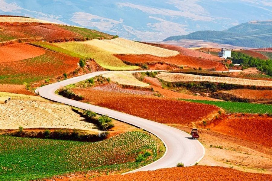 Každý rok na jak, kedy je čas na orbu, prichádza do Yunnan množstvo návštevníkov a fotografov, aby sa pokochali výhľadom na čerstvo pooranú červenú krajinu čakajúcu na sejbu, obklopenú zelenejúcimi sa lúkami naokolo. Ohnivo červená pôda spolu so smaragdovo zeleným jačmeňom, zlatistou farbou pohánky a azúrovo modrou farbou oblohy vytvárajú jednu z najkrajších farebných kombinácií, aké môžete v prírode vidieť.