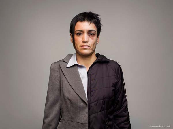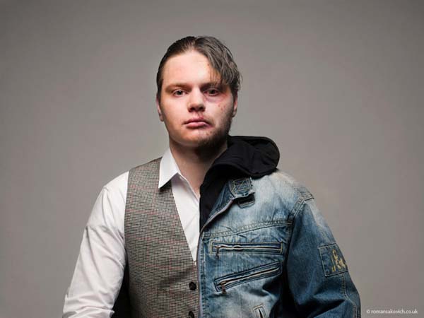 Roman Sakovich nazval svoj projekt "Half". Ľudské tváre rozdelil na polovicu, pričom jedna polovica tváre znázorňuje zdravého človeka, druhá polovica tváre ukazuje, ako môže vyzerať človek po dlhodobom užívaní drog.