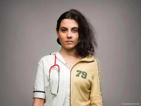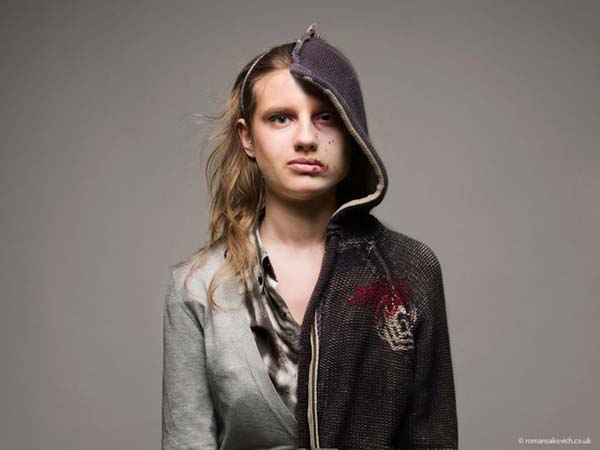 Zmrzačené tváre nie sú dielom photoshopu ale výsledkom šikovných rúk maskéra. Fotograf Sakovich ukázal dve cesty, ktoré si človek môže vybrať: žiť zdravý život alebo zničiť si život závislosťou na drogách.