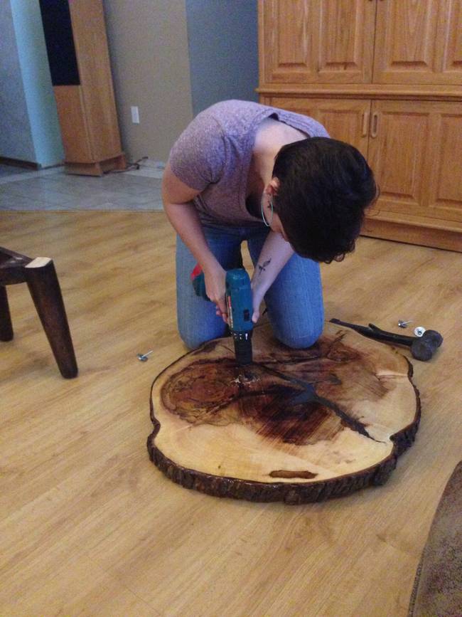 Z kmeňa stromu vyrobil slepý otec svojej dcére malý stolík. Tak bude mať dcéra navždy pamiatku na svoj obľúbený strom z detstva.