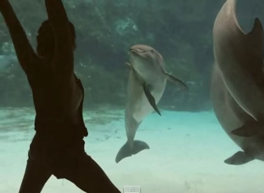 Gymnastka si chcela vytvoriť video pred akváriom s krásnymi delfínmi a vtom ju niečo prekvapilo. Pozrite si video a zistíte, že sa delfíny nedá nemilovať.