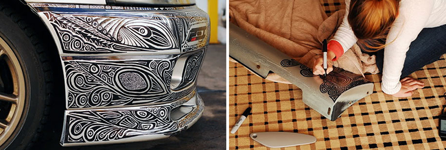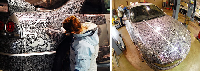 Vlastníkovi auta sa to tak zapáčilo, že popýtal svoju manželku, aby mu takto pokreslila celé auto. Po 100 hodinách kreslenia a niekoľkých vonkajších tuningoch je na svete neopakovateľné auto, ktoré majiteľovi môže celý svet závidieť.
