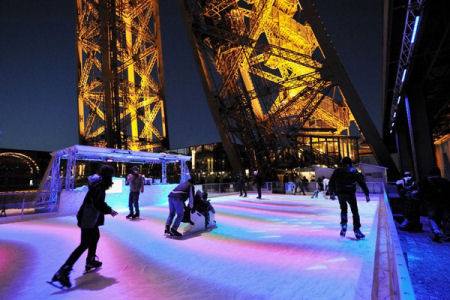 Paríž, Francúzsko - užite si nádherný výhľad na Paríž priamo z unikátneho klziska Eifelovej veže. Skvelé miesto na vytvorenie nezabudnuteľných zážitkov. Klzisko sa nachádza na prvom poschodí tejto známej francúzskej pamiatky a je umiestnené medzi dvoma masívnymi oceľovými nohami veže. Až 80 korčuliarov naraz si môže vychutnať tento nevšedný zážitok z korčuľovania.