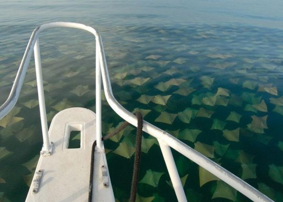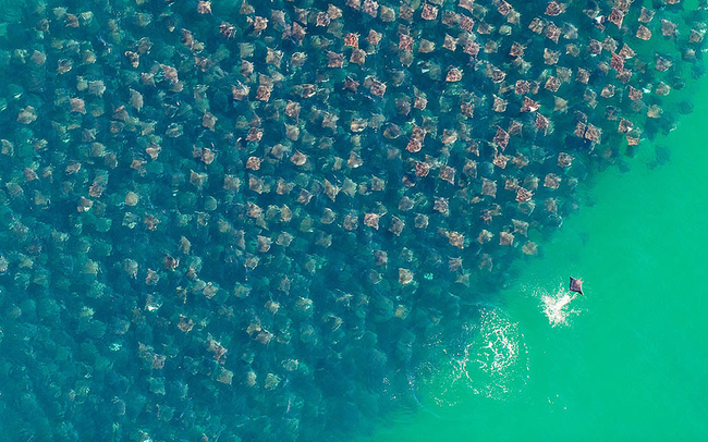 Z výšky to pripomína popadané lístie na vode. Byť tak na lodi, asi však takí pokojní neostanete, akoby to bolo lístie. V skutočnosti je to totiž obrovská migrícia tisícok rají.