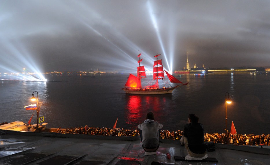 Festival bielych nocí, Petrohrad, Rusko. Festival bielych nocí sa koná v období, keď v arktickej oblasti pol roka nezapadne slnko. Koná sa od konca II. svetovej vojny, keď sa študenti začali stretávať, aby oslávili koniec školského roka. Festival sa rýchlo stal akousi demonštráciou slobody, pokoja od školy a nesúhlasu s ruskými totalitnými pravidlami. Milión nadšencov sa počas slávnosti pozerá na loď s červenými plachtami, ktorá sa plaví po rieke a je sprevádzaná ohňostrojmi a zábavnými predstaveniami.