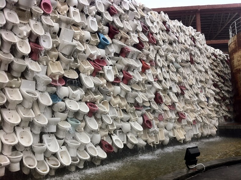 Autorom tohto „umeleckého diela“ je Shu Yong, ktorý spolu so svojim tímom strávil pri inštalácií toaliet dva mesiace. Toto recyklované dielo vzniklo zozbieraním vyhodených záchodových mís a umývadiel od obyvateľov mesta. Všetky zariadenia sú pripojené na vodu, a tak z toho vznikol veľký záchodový vodopád. Šli by ste k nej osviežiť?