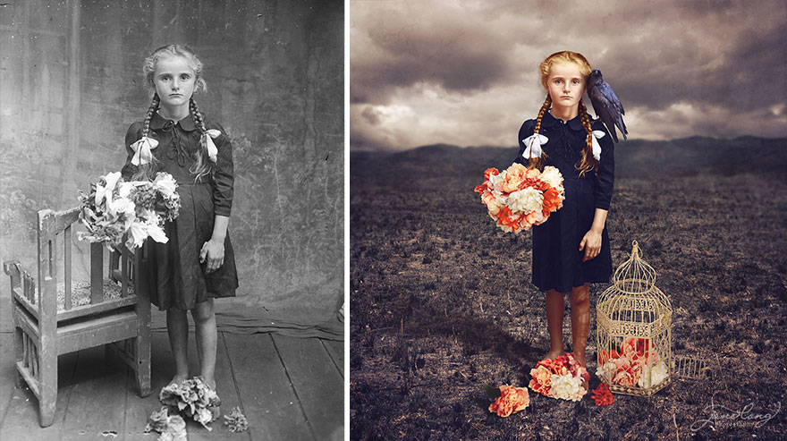 Umelkyňa Jane Long na fotografie nahliadla trochu iným okom a vdýchla im nový farebný život. Na zmenených fotografiách nie je zaujímavá len ich farebnosť ale aj úplne iné prostredie a ich krásny surrealistický nádych.