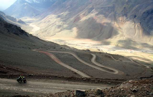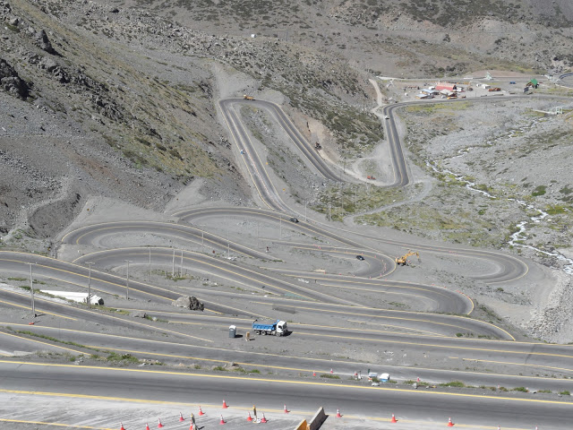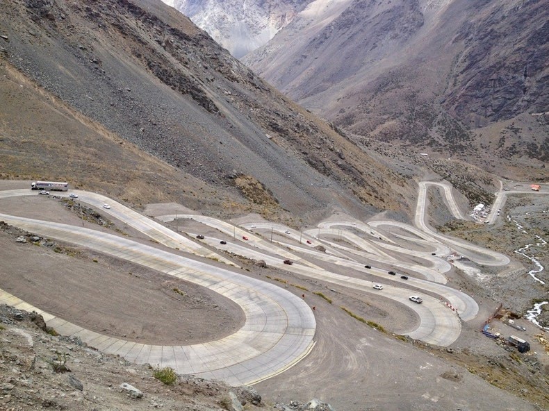 Cesta na Čilskej strane začína strmým stúpaním, približne 50km od mesta Los Andes, ktoré leží 70km severne od Santiaga. Prvých 20 serpentín sa ťahá asi 4 kilometre so zmenou v nadmorskej výške z 2,275 m na 2,550 m. Cesta potom stúpa o niečo miernejšie ďalšie 2 kilometre na nadmorskú výšku 2,650 m. 9 zostávajúcich serpentín vás dostane 2,800 m nad more a od tohto bodu je to ešte 7 kilometrov ku začiatku starej cesty vedúcej až na samotný vrchol.