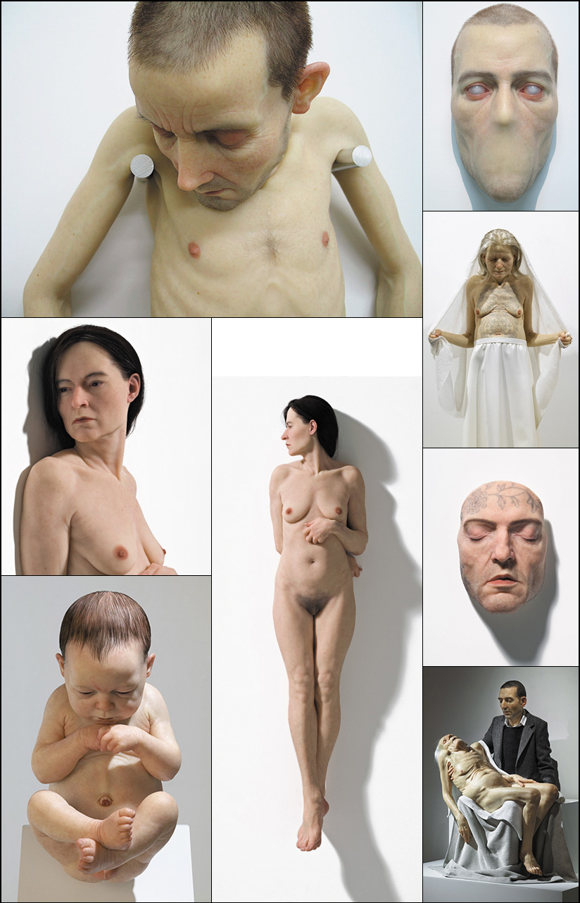 Intímnu atmosféru jeho výstav zapríčinia skulptúry zobrazujúce nahé ľudské telá. Tie sú vytvorené zo silikónu, sklolaminátu, živice a uhličitanu vápenatého. Realistický vzhľad im dotvárajú ľudské vlasy. Aby sa vyhol jednoduchému odliatiu ľudského tela, sochy sú buď menšie alebo obsahujú časti zvierat.