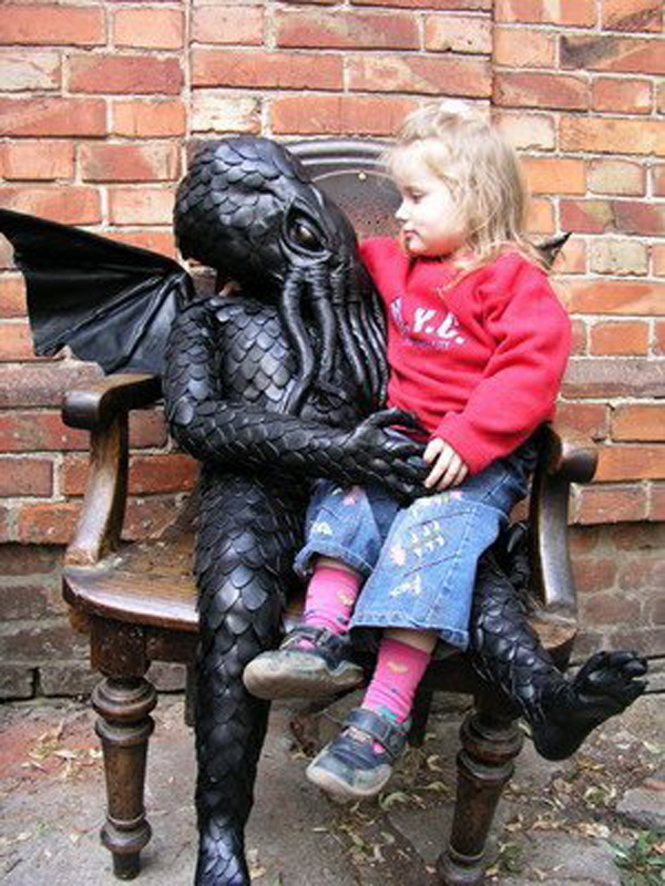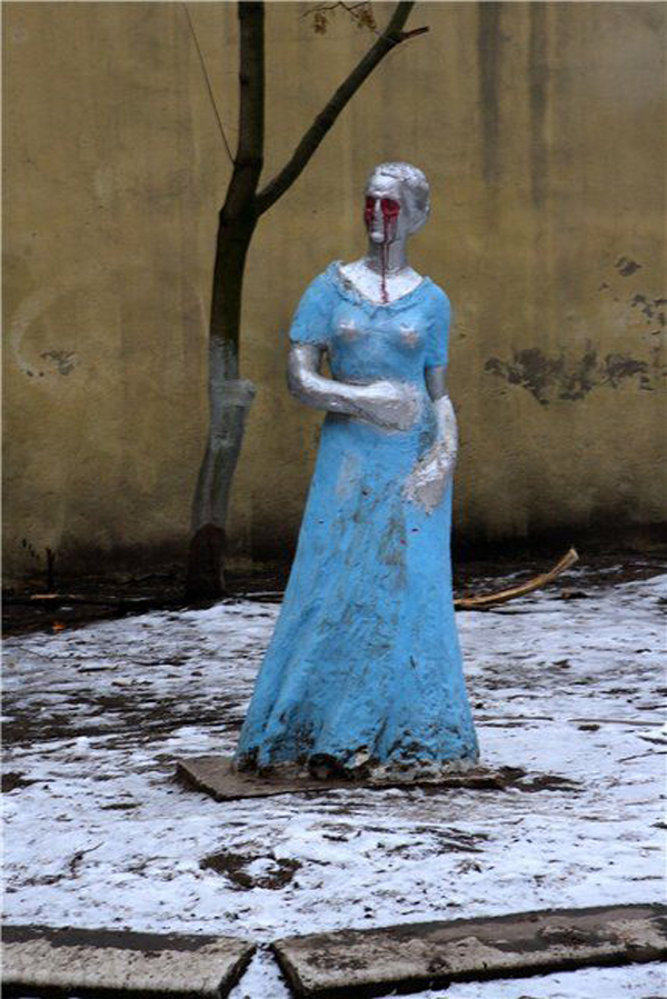 Streetartistami poupravená socha, ktorá straší na detskom ihrisku.