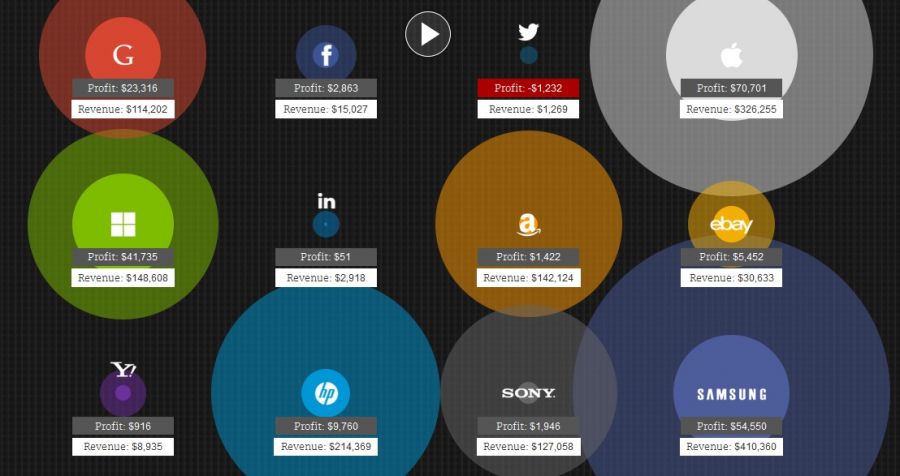Za infografiku môžeme ďakovať marketingovej spoločnosti Distilled , ktorá projekt pripravila pre klienta WorldPay Zinc. Porovnáva revenue (príjmy) a profit (zisky) najväčších internetových a IT spoločností planéty, s časovaním na sekundy.