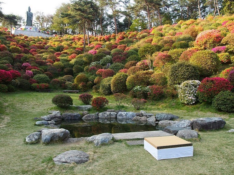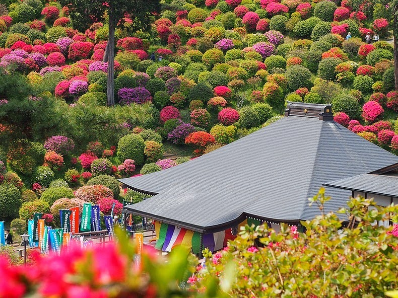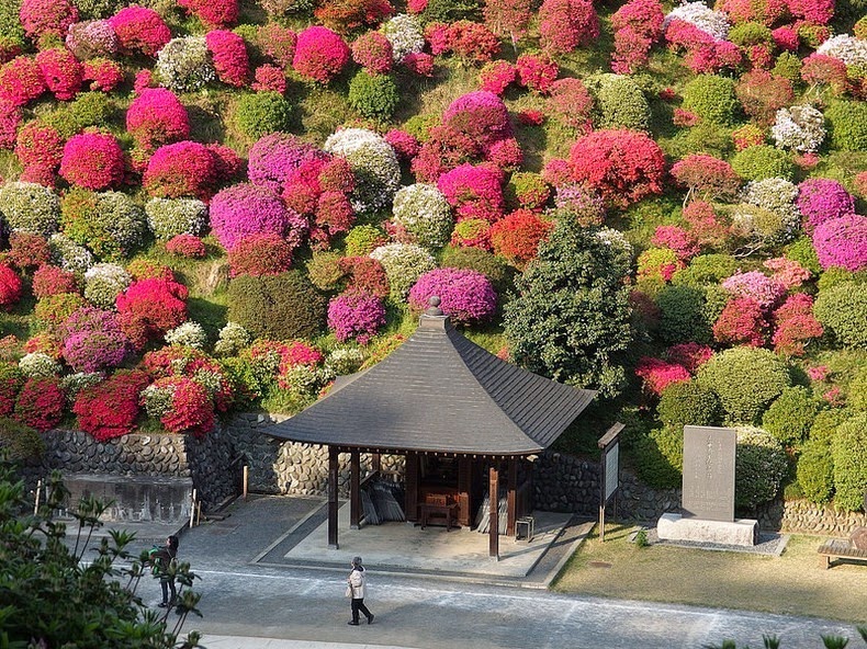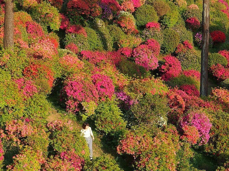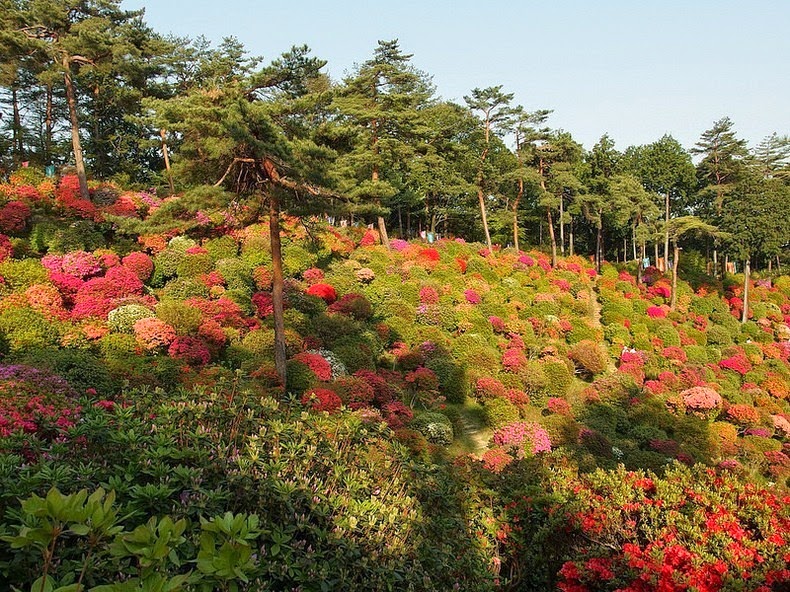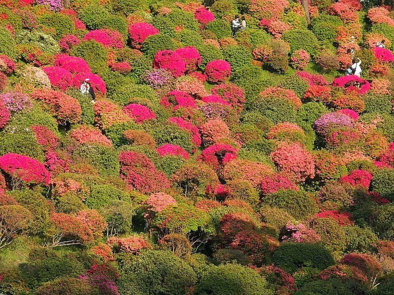 Z diaľky vyzerajú ako malé farebné bodky, no pri pohľade z blízka sa vám naskytne pohľad na krásne azalkové kríky hýriace pestrými farbami. Na tomto rozprávkovom mieste sa každý rok koná azalkový festival, kedy sú kopce zaliate farebnými kvetmi a lákajú tisícky zvedavých návštevníkov.