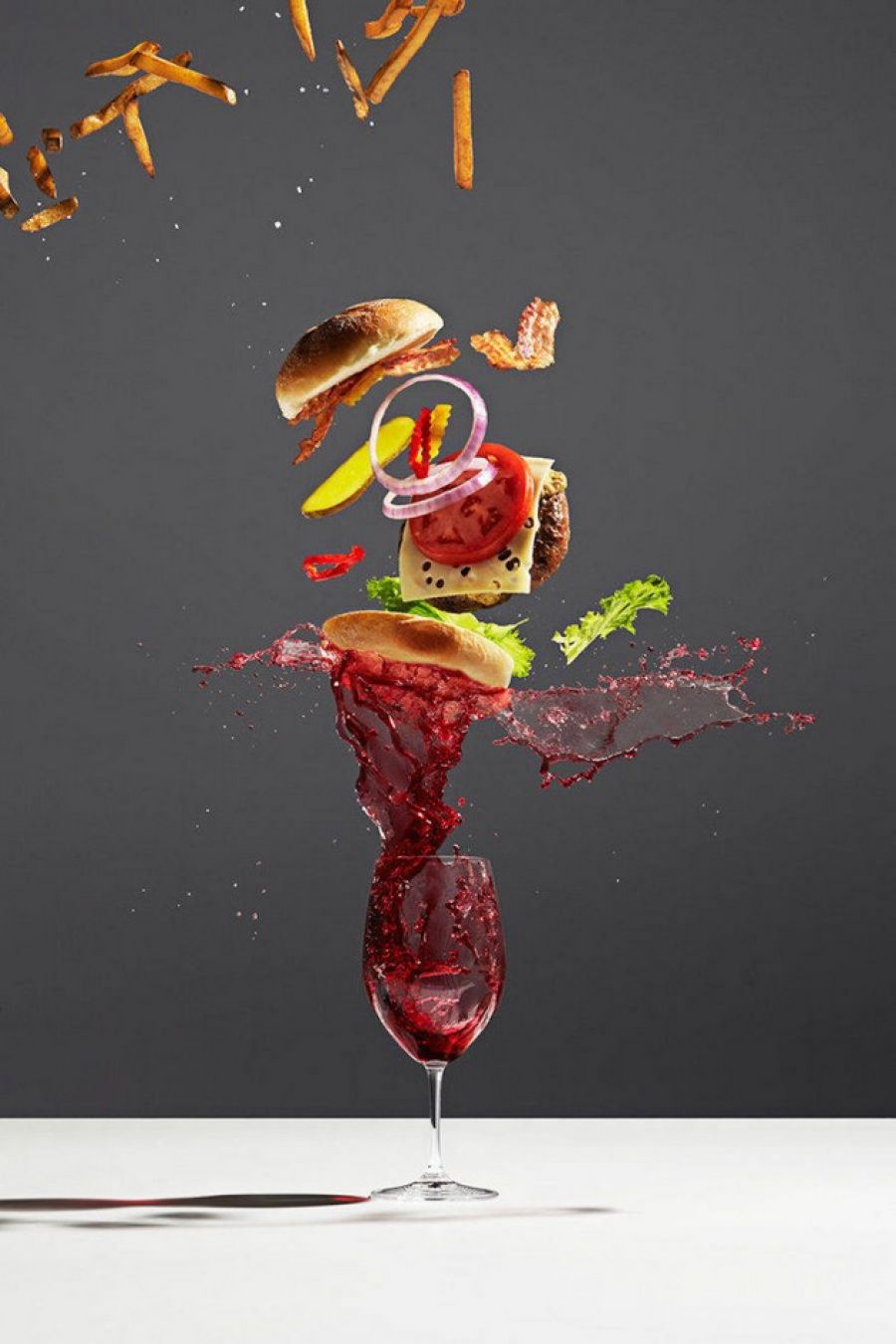 Konceptuálne jedlo. Tak znie názov série fotografií, ktoré vytvoril Michael Crichton, ako akúsi poctu všetkým pokrmom. Torontský umelec to poňal hravo a jednoducho - stravu z McDonaldu či výrobky firmy Nutella jednoducho vyhodil do vzduchu a v správnom momente cvakol spúšť.
