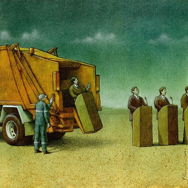 Vizuálne prezentácie toho, čo všetko je s naším svetom zle, prináša poľský umelec Pawel Kuszynski, ktorý svojim brilantným satirickým umením umožňuje publiku vnímať svet okolo seba bez ružových okuliarov.