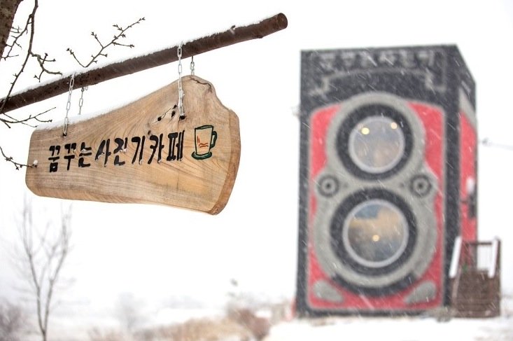 V netypickej budove sa nachádza kaviareň, kde si okoloidúci, susedia či turisti môžu zájsť na kávu, čaj, či iné dobroty. Coffee shop pomenovali Dreaming Camera a okrem kávy, tu nájdete aj množstvo historických fotoaparátov. Aj keď je stavba uprostred polí ako päsť na oko, veselej kórejskej rodinke sa splnil vytúžený sen.