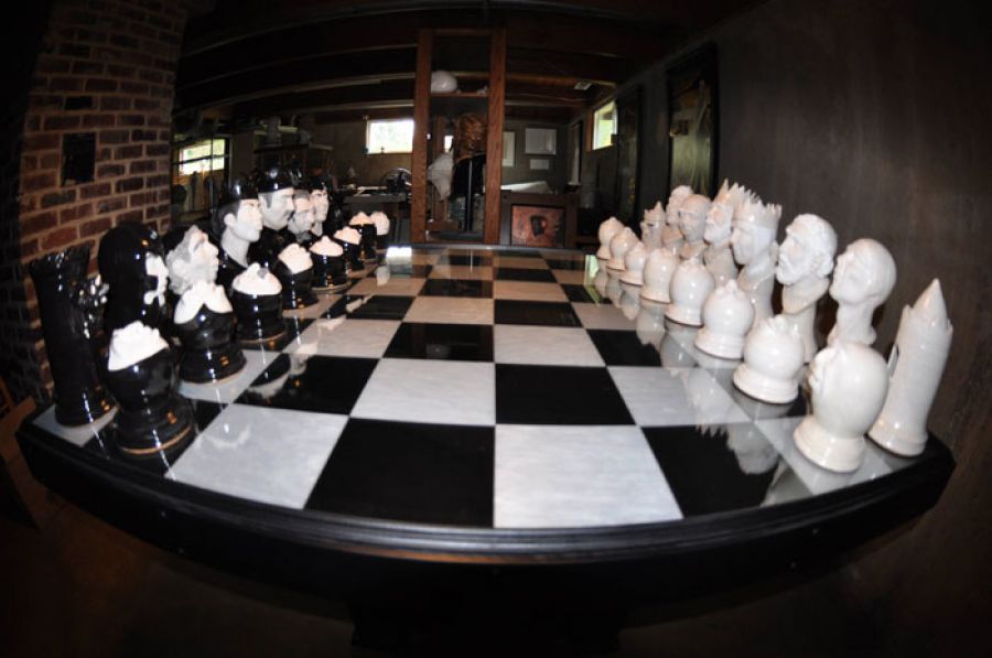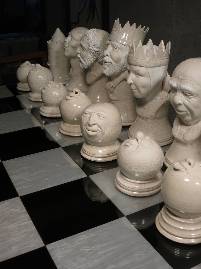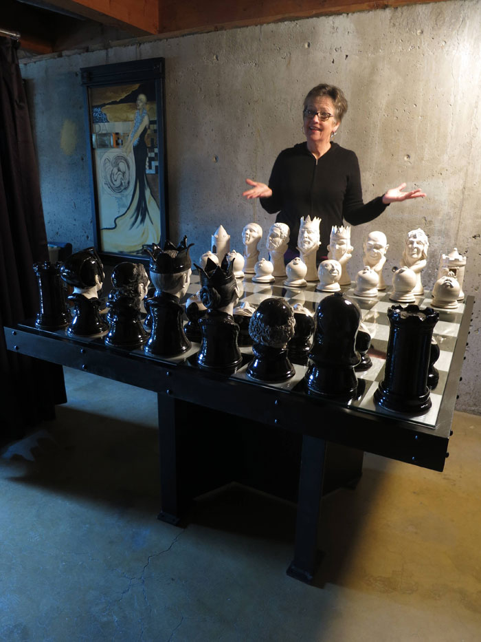 Umelkyňa vytvorila nezvyčajný šachový svet. Každá figúrka má inú tvár a nesie vraj osobitný príbeh. Napríklad čiernu kráľovnú umelkyňa vytvorila podľa tváre čašníčky, ktorá ich počas jednej noci obsluhovala. Musí to byť česť stať sa kráľovskou tvárou v šachu.