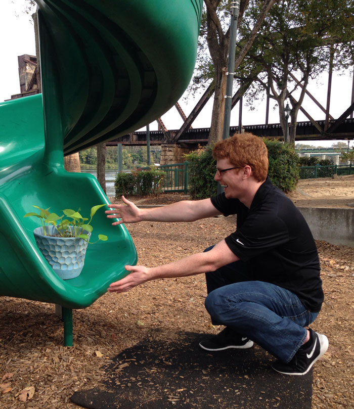 Chlapík svoju opatrovateľskú úlohu zobral naozaj vážne a snažil sa zo všetkých síl, aby sa pri ňom rastlinka cítila čo najlepšie. My si myslíme, že svoju úlohu splnil. Horšie je, že takýto naplnený program môže teraz rastlinke chýbať.