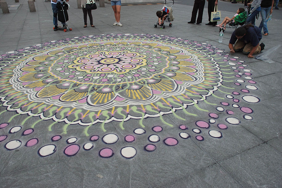 V newyorských uliciach vytvára neuveriteľne krásne obrazy z rôznofarebného piesku, ktoré pripomínajú mandaly. Prvýkrát si zbalil svoje vrecúška s pieskom a vyrazil do ulíc už v roku 2006, avšak toto hobby mu ostalo dodnes. Každý víkend skrášľuje chodníky farebnými obrazmi. Najdôležitejšia je trpezlivosť a fakt, že sa postupom času sa všetko rozplynie.