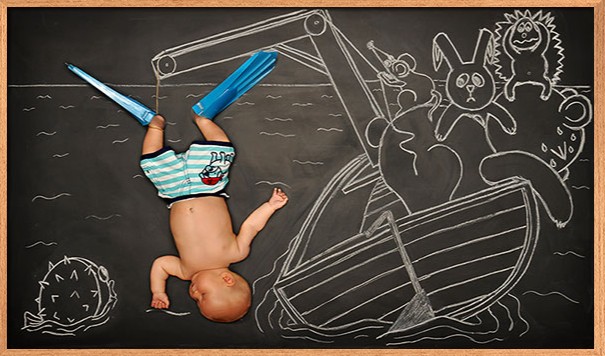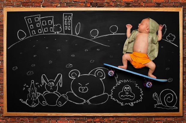 Anna Eftimie je fotografka a matka dvoch deti zo San Jose z Kalifornie. Vytvorila sériu fotografií pod názvom Tabuľové dobrodružstvá, v hlavných úlohách s jej deťmi. Počas toho, ako jej deti zaspia na tabuli, pomocou kriedy a fantázie vytvorí okolo nich rozprávkový svet a nakoniec to odfotografuje.