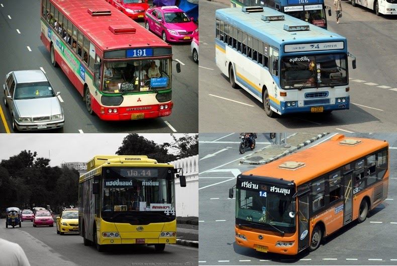 Bangkokská lentilková doprava sa však neobmedzuje len na taxíky, ale aj na autobusy, ktorých farba značí trasu, tarifu, vlastníctvo a tiež či daný autobus má alebo nemá klimatizáciu. Červeno-smotanové sú neklimatizované a patria k najlacnejším spôsobom dopravy v meste. Bielo-modré nie sú o nič lepšie, akurát že si za ne trošku priplatíte. Byť v niektorom z týchto autobusov počas horúceho dňa a ešte k tomu v dopravnej špičke musí byť naozaj nezabudnuteľný zážitok. Krémovo-modré autobusy sú už o niečo pohodlnejšie ako predchádzajúce dva a majú dokonca aj klimatizáciu. Žlto-oranžové sú tiež klimatizované a relatívne nové. Fialové alebo červené mikrobusy patria súkromníkom a ponúkajú ľuďom alternatívnu dopravu. Sú klimatizované a majú fixnú sadzbu bez ohľadu na prejdenú vzdialenosť. Autobus zastaví len v prípade, že má ešte voľné miesta na sedenie, takže máte zaručené, že v ňom neostanete stáť.