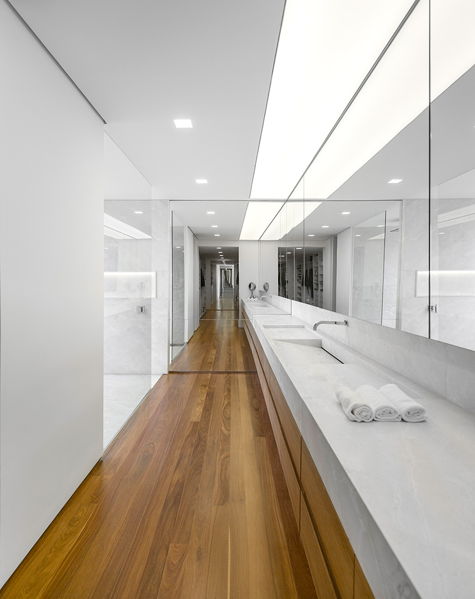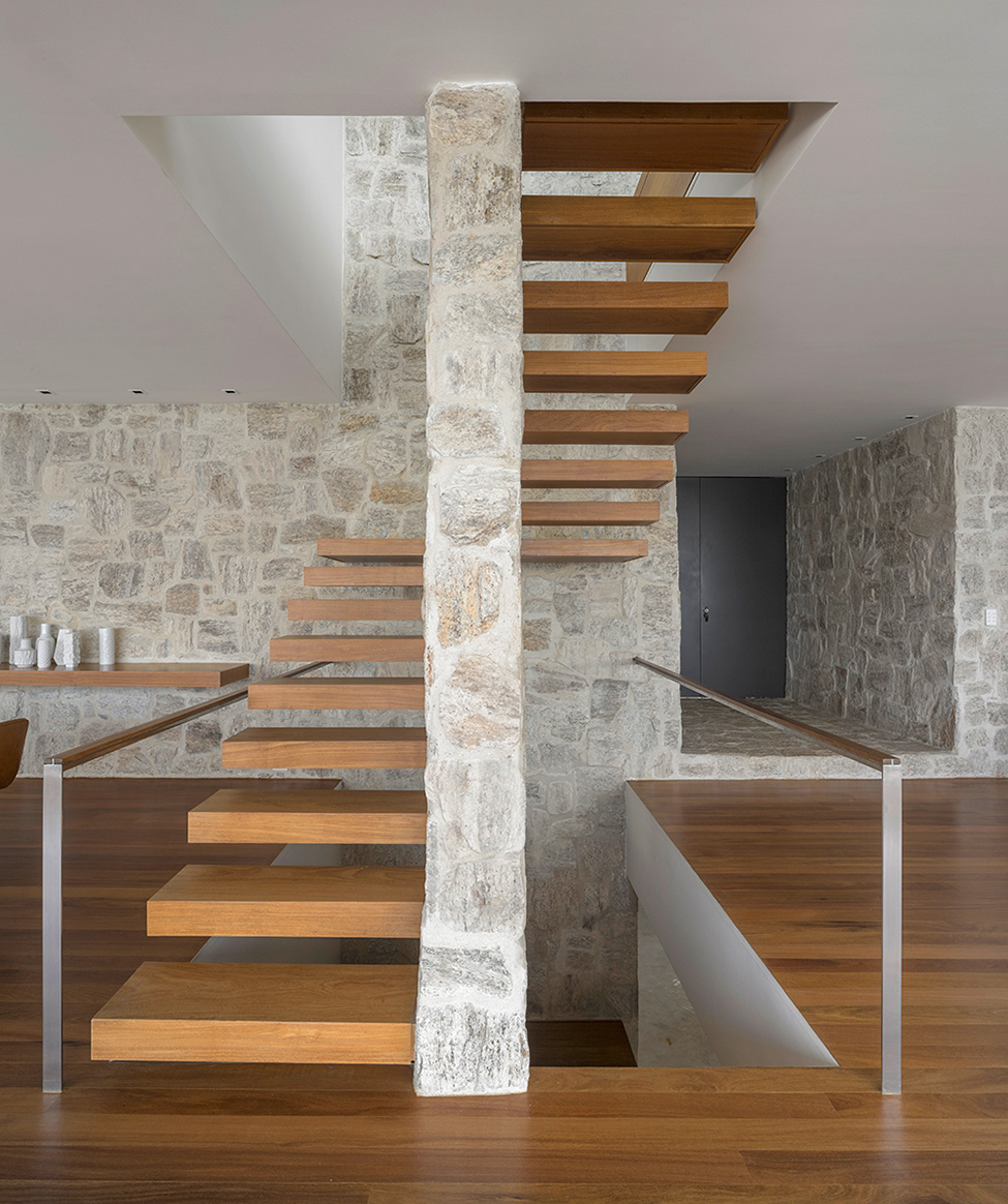 Čisté dizajnové línie od podlahy až po strop a posuvné sklené panely dodávajú moderný nádych a súčasne oddelenie spoločenských a súkromných priestorov. Jednota vonkajšieho a vnútorného priestoru bola navrhovaná s najväčšou precíznosťou a starostlivosťou. Priestranný bazén nebol jedinou z požiadaviek vlastníka. Kameň použitý na stavbu mal byť rovnakej farby, ako Múr nárekov v Jeruzaleme. Požiadavka to síce bola veľmi zvláštna, no architektom sa ju podarilo zakomponovať do priestorov veľmi moderným a atraktívnym spôsobom.