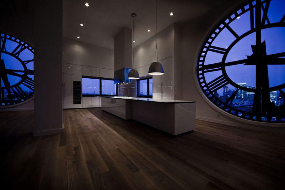 Lákadlom pre potenciálnych záujemcov je neopakovateľný 360° výhľad na celé mesto. Luxusný byt je skutočným architektonickým skvostom. Celkovo tu nájdete jedenásť miestností, z toho tri izby a tri kúpeľne. Najzaujímavejším a najreprezentatívnejším priestorom je obývačka spojená s jedálňou a kuchyňou. Jej dominantou sú štyri hodiny otočené na každú svetovú stranu, ktoré zároveň slúžia aj ako okná. Medzi ďalšie skvosty patrí presklený výťah situovaný priamo uprostred penthousu.