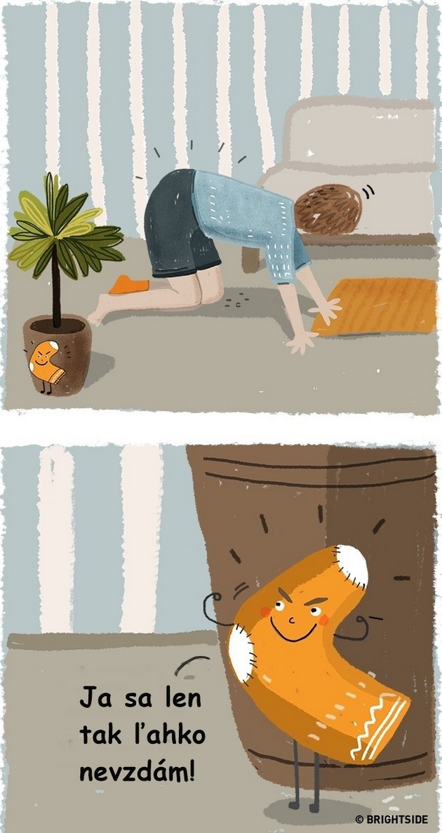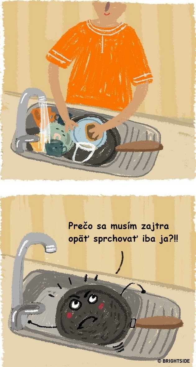 Milé ilustrácie ti ukážu, že veľakrát majú čo povedať napríklad aj topánky alebo chladnička a že pripálené jedlo nechce ísť z panvice dole, pretože sa urazila.