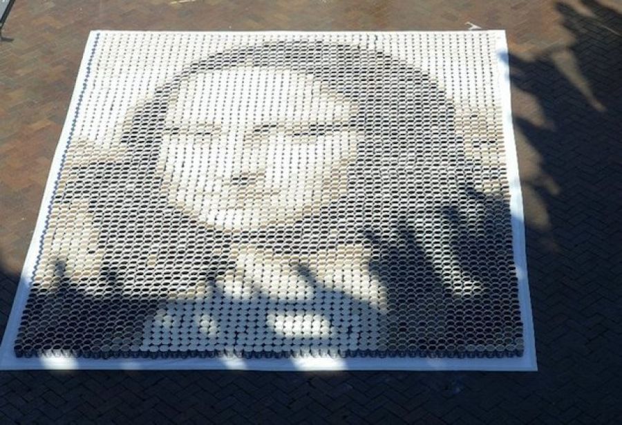 Kávoví nadšenci totiž vytvárajú obrazy známych osobností len za pomoci plastových pohárov naplnených kávou a mliekom. Aby dosiahli sépiové odtiene, do kávy vmiešavajú požadované množstvo mlieka. Výsledkom sú mozaiky Mony Lisy či Marilyn Monroe. Na výrobu koláži bolo potrebných cez 4000 pohárov.