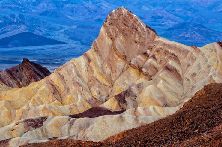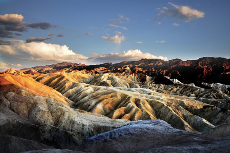 Užite si pohľad na farebnú zvlnenú krajinu plnú roklín a bahenných kopcov nachádzajúcu sa len pár kilometrov od známeho Údolia smrti.