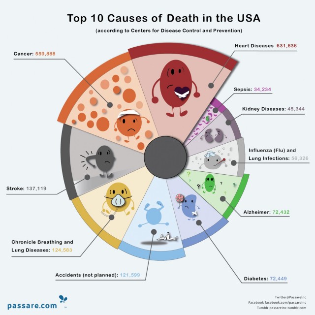 Aj keď ide o rebríček 10 najčastejších príčin smrti v Spojených štátoch, veľké rozdiely medzi Európou a Amerikou nie sú. Nejde síce o veľmi pozitívne čítanie, avšak môžete sa z neho dozvedieť aj to, na čo by ste si mali dávať pozor a ktoré vyšetrenia netreba podceňovať. Zamyslite sa nad tým, že prevencia niektorých chorôb vám môže zachrániť život.