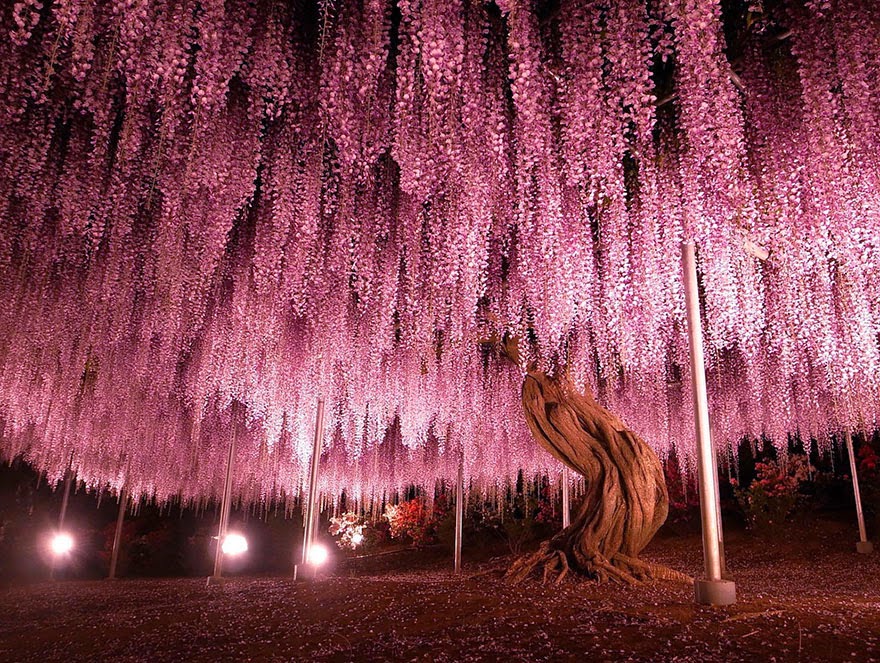 144 ročná vistéria v Japonsku - rozprestiera sa na 1 990 štvorcových metrov a je najväčšou vistériou svojho druhu v Japonsku.