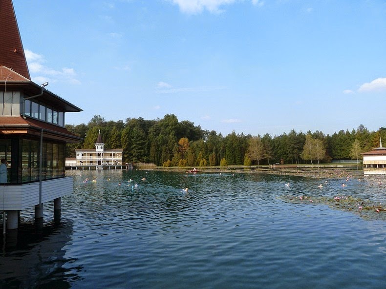V strede jazera je drevený kúpeľný dom postavený ešte v 18. storočí, ktorý však vyzerá viac menej rovnako, ako pred viac ako dvoma stovkami rokov. Krásne lekná, ktoré boli prinesené do Maďarska koncom 19. storočia, podporujú bohatú ekológiu jazera. Hmla pokrývajúca vodnú hladinu spomaľuje odparovanie a popínavé rastliny chránia liečivé bahno na jeho dne. Voda plná vzácnych minerálnych látok pochádza z prameňov nachádzajúcich sa v 40 metrov hlbokej jaskyni. Tok je tak silný, že jazero sa v plnej miere dopĺňa raz za tri dni a jeho teplota sa pohybuje medzi 23-25°C v zime a 33-36°C v lete.
