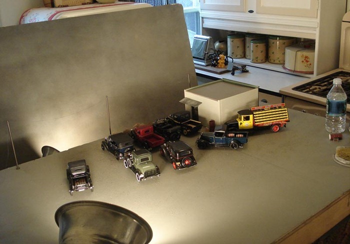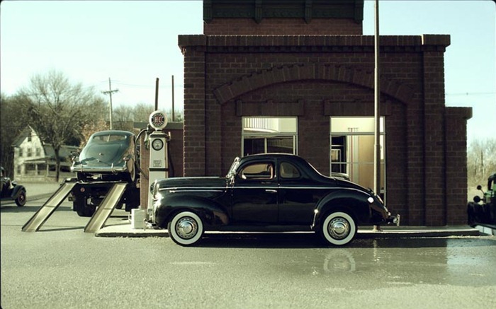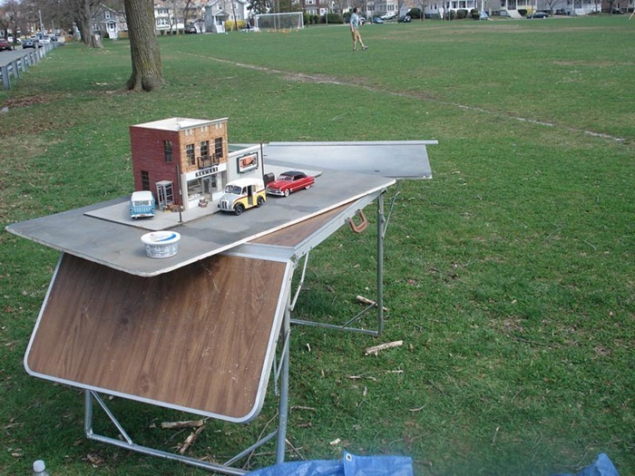 Vytvoril makety domčekov, autá dosadil zo svojej zbierky a nezabudol ani na ten najmenší detail. Vo svojich dielach dokáže nasimulovať rôzne počasie ako popršanú cestu alebo sneh, dokonca strieda ročné obdobia a mestečko fotí aj v tme. Treba podotknúť, že fotografie vznikajú bez použitia Photoshopu.