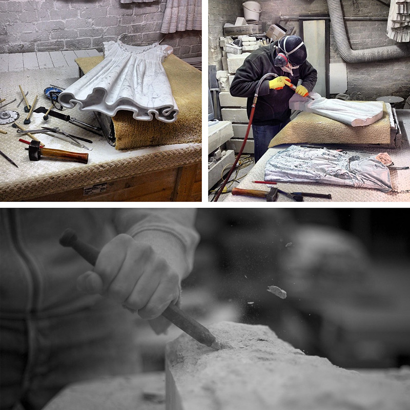 Škótsky umelec vytvoril svoje dielo s názvom "The Identity Collection" podľa oblečenia, ktoré mu priniesli jeho kamarátky a rodina. Jeho cieľom bolo zobraziť ľahkosť a jemnosť tkaniny aj na takom materiáli, ako je tvrdý mramor. A musíte uznať, že sa mu to podarilo.