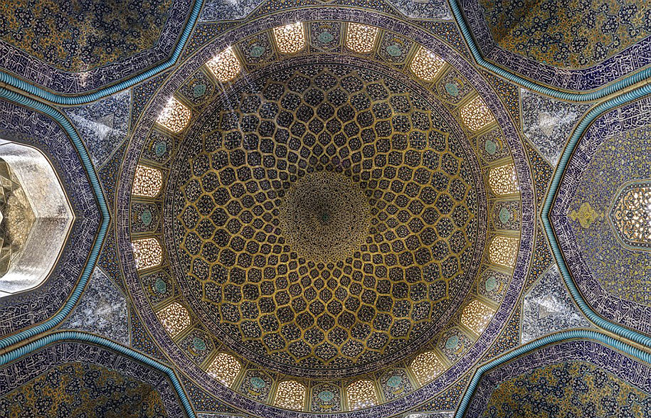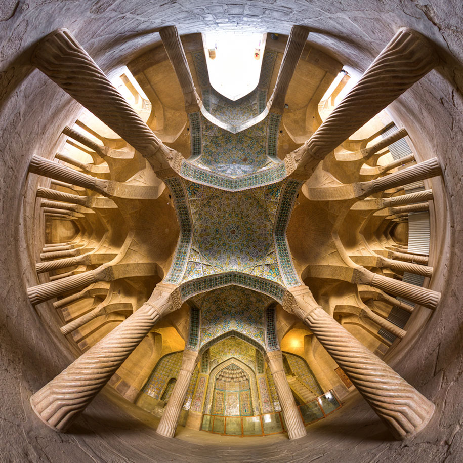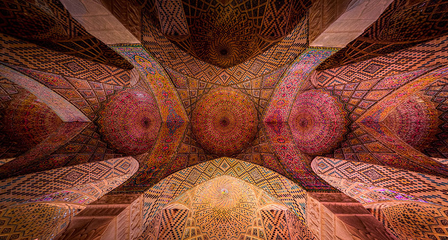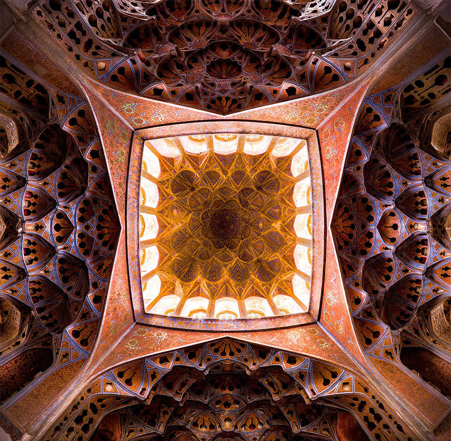 Mohammad Domiri je mladý samouk-fotograf zo severného Iránu, ktorý zachytáva krásne fotky tradičných architektonických pamiatok po celom Blízkom východe. Väčšina z nich sú veľkolepé tradičné mešity, ťažko zdobené fascinujúce geometrické vzory a mozaiky víriace pestrými farbami, rovnako ako kolosálne kaleidoskopy.