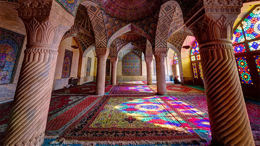 Veľkolepá architektúra iránskej mešity, ktorá je doslova zaliata pestrými farbami, je zachytená na vzácnych fotografiách od mladého talentovaného fotografa.