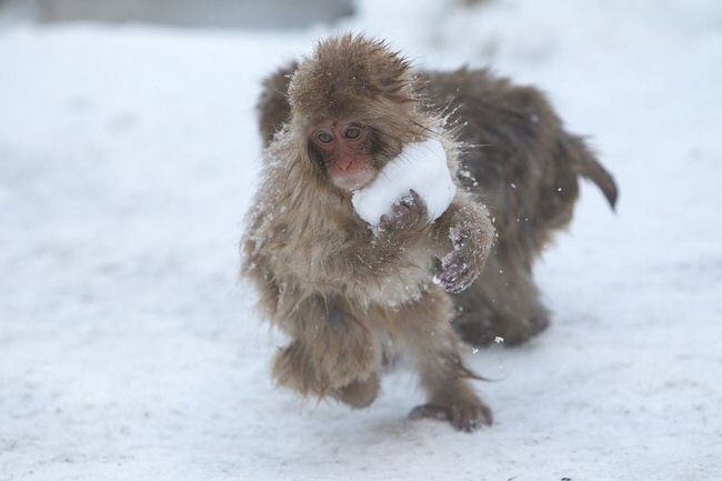 Japonské makaky si tvarujú snehové gule pre zábavu.