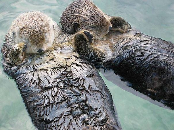 Keď vydry spia na vode, držia sa za labky, aby sa od seba neoddelili.
