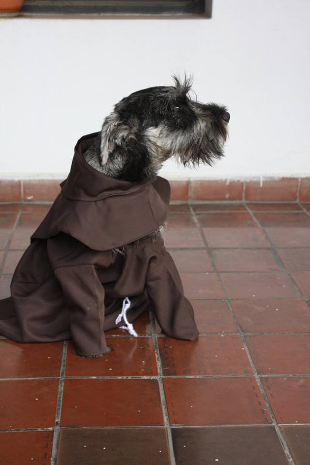 Do kláštora sa dostala tak, že si ho mnísi adoptovali z miestneho útulku. A nielen to, bol pokrstený a dostal vlastné sväté meno “Friar Bigotón”, vo voľnom preklade “Brat Fúz”. A to je logické, keďže ide o psíka známeho aj ako fúzač.