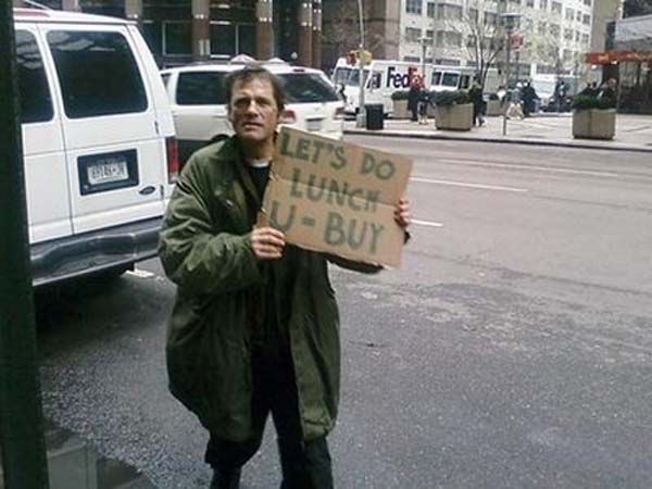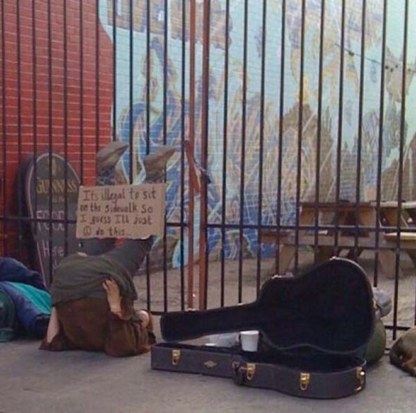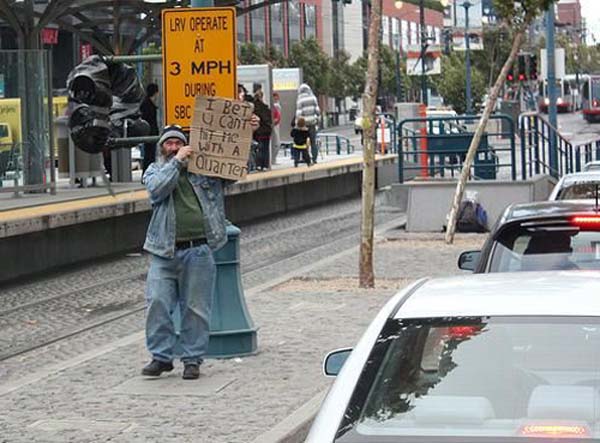 Každý reaguje na žobranie bezdomovcov rôzne. Keby sme stretávali takýchto kreatívnych bezdomovcov, asi by sme si v peňaženke rýchlejšie našli nejaký ten zvyšný centík.