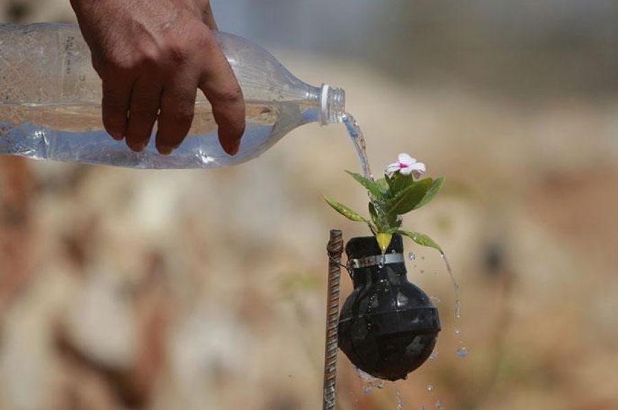Palestínska žena z obce Bilin, ktorá sa nachádza neďaleko Ramallahu, vysadila záhradu plnú farebných kvetov. Nebolo by na tom nič zvláštne, keby ich nepestovala vo vnútri použitých granátov so slzným plynom, ktoré pozbierala po konfliktoch medzi izraelskými vojakmi a miestnymi Palestínčanmi. Jej záhradka sa nachádza v oblasti, ktorá bola kultivovaná Palestínčanmi pred dvoma rokmi po bitke, ktorá presmerovala výstavbu Izraelského vysoko kontroverzného bezpečnostného múru, ktorý sa bude po dokončení tiahnuť takmer 700 km okolo celého západného regiónu.