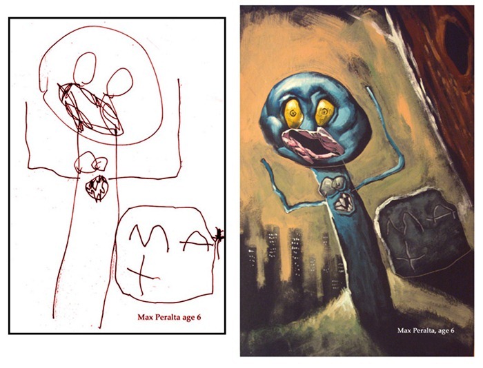 Vyzerá to tak, že umelci by boli bez detí stratení. Opäť jeden príklad, kedy sa umelec chytil detských kresieb a pretvoril ich na realistickejšie vyzerajúce hororové strašidlá.