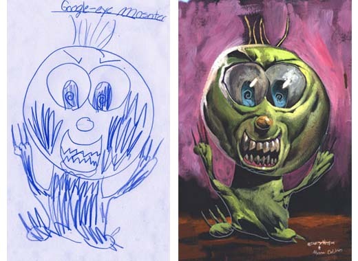 Keďže denne maľoval 3D pre Marvel a DC comics, nebol dôvod, aby nedokázal oživiť aj detské machule. Odvtedy zbiera Devries detské kresby príšerok a pretvára ich do hororovej podoby.