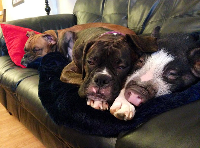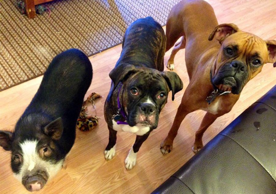 10 mesačná Virginia z Kolorada je rozkošné prasiatko, ktoré však trpí miernou krízou identity. Podľa slov jej majiteľov sa cíti skôr ako pes. Od malička totiž žije s párikom boxerov, a preto nadobudla pocit, že je jedným z nich.