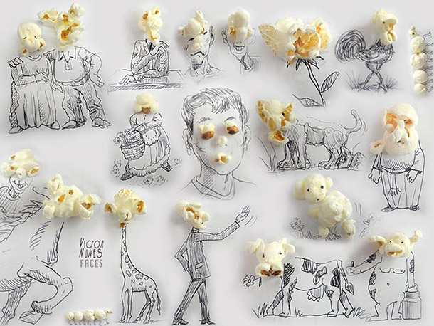 Hrášok, zemiakové lupienky alebo popcorn. Stačí len trochu fantázie a tieto chutné veci sa zmenia na umelecké diela.